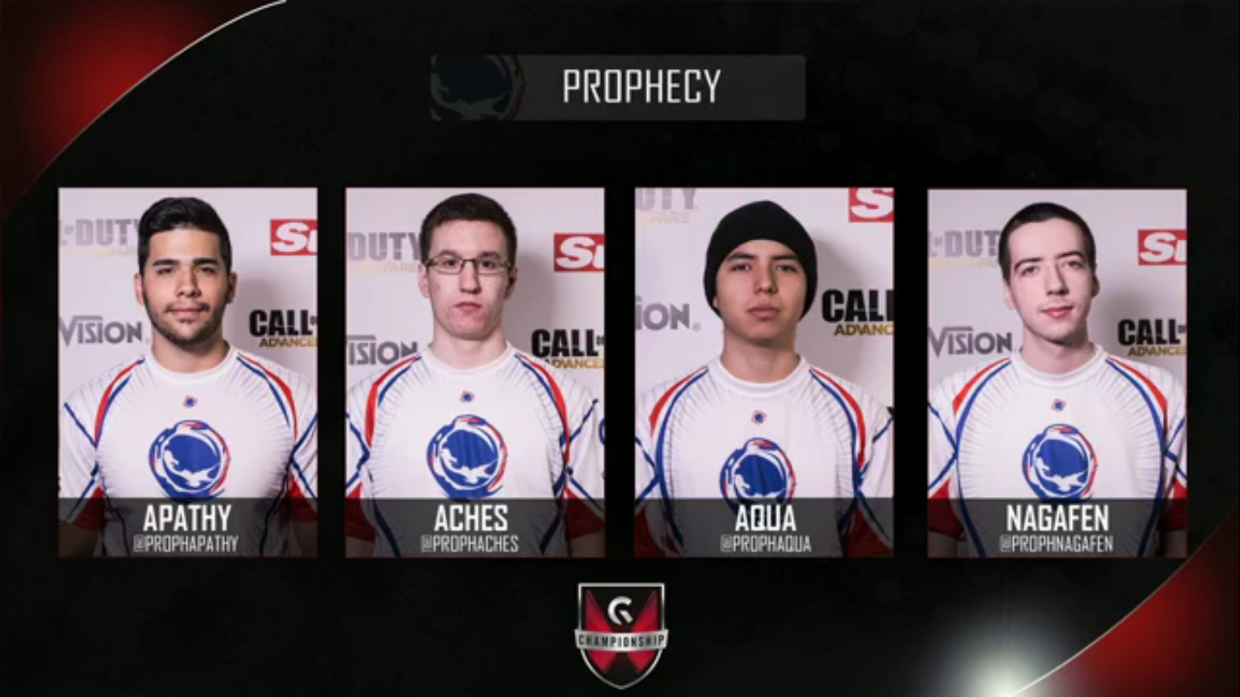 Towards the release of Advanced Warfare, Oliver "Acid" Sellors announced that Prophecy would make a return with a new North American roster going into MLG Columbus 2014. They landed with a roster of Parasite, Ricky, FEARS, and Legal. The four players competed in 2K's and 5K's leading up to the event with some success, and had a lot to prove at Columbus to obtain a League Spot for MLG Pro League CoD AW Season 1 Regular Season. They advanced first in their pool over Team Kaliber and OpTic Gaming with a 3-1 match count. They then faced OpTic Nation in Winners Bracket Round 1, bringing it all the way to a Game 5. In dominating fashion, they completed the Search and Destroy with a 6-0 sweep to face FaZe Clan in the next round. On top of their game, they beat FaZe 3-0 map count and at that point securing their League spot. They met up with OpTic Gaming in the Winner Bracket finals, where they took a tough 0-3 loss. To contend for their spot in the Grand Final, Prophecy faced FaZe in the Losers Bracket Final, who they previously 3-0'd a day earlier. Coming down all the way to a Game 5 Search and Destroy, FaZe pull away with a 6-2 win.